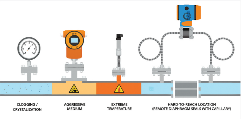 seals and capillary systems for all types of pressure and differential pressure transmitters.